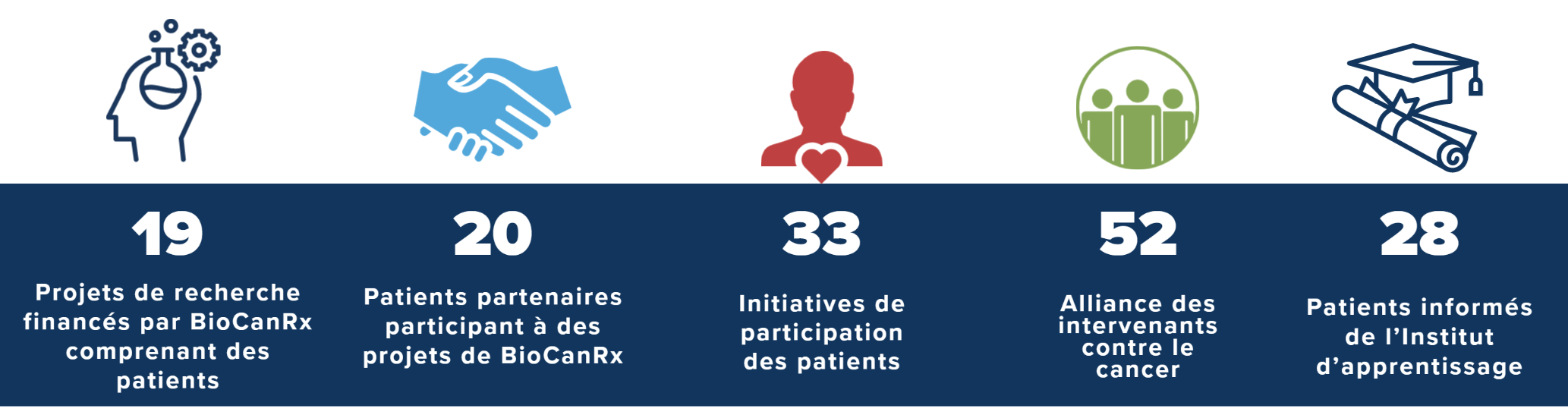 À titre de référence, chez BioCanRx, les « patients » comprennent « les patients atteints de cancer, les soignants et les systèmes de soutien ».